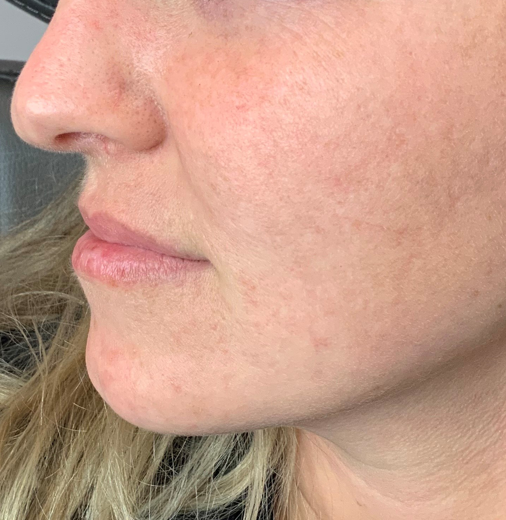 Over the next 24-48 hours you may see a darkening of pigmented spots; in the week afterwards, the pigmented lesions flake off and your skin tone becomes even. After treating vascular lesions, you may see the vein blanch disappear or a color change in the vessel which dissipates after a few days. It is recommended to avoid direct sunlight and tanning. The use of sunscreen and medical grade skincare is encouraged to accelerate skin healing and to protect the regenerating tissue.